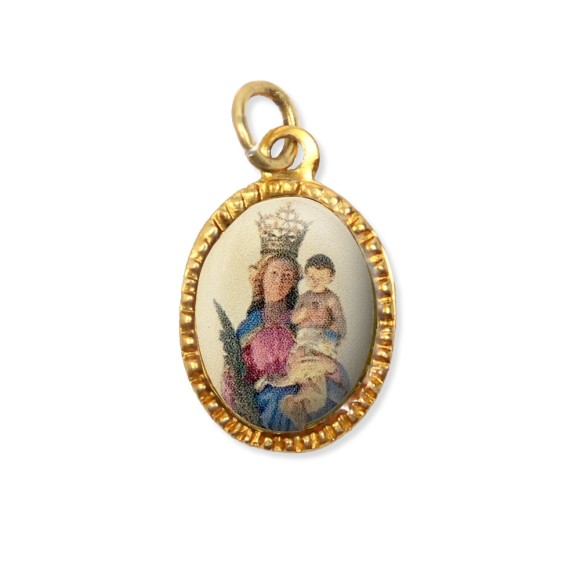 *Medalha de Alumínio Oval Dourada c/ 10un. N. Sra. dos Prazeres - 2x1,3cm .