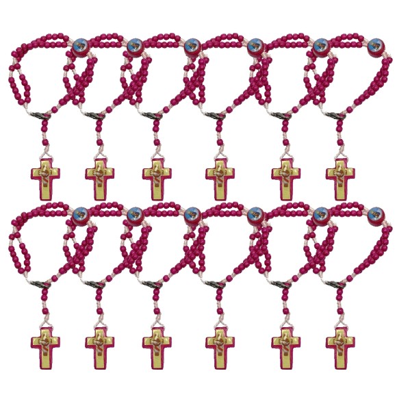 PU720480P12 - Pulseira Terço N. Sra. Aparecida Infantil Madeira c/ 12un. - 19x1,6cm