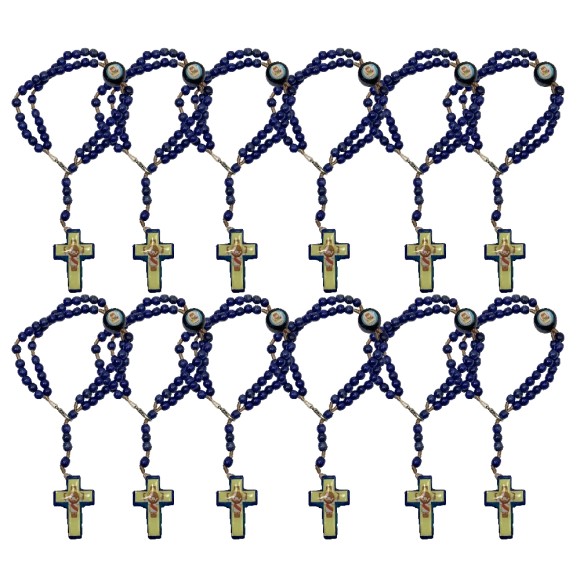 PU720482P12 - Pulseira Terço N. Sra. Aparecida Infantil Madeira c/ 12un. - 19x1,6cm