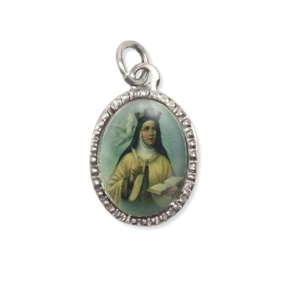 MD103633P10 - Medalha de Alumínio Oval Prata c/ 10un. Santa Teresa D'Ávila - 2x1,3cm