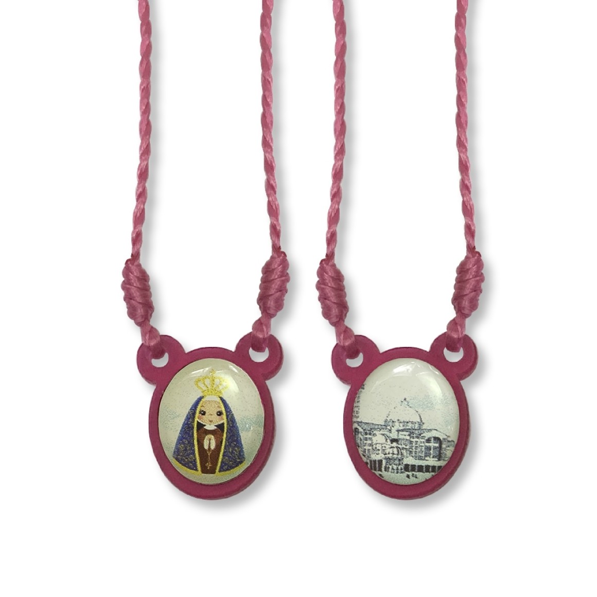 *Escapulário N. Sra. Aparecida Infantil Acrílico Rosa c/ 6un.